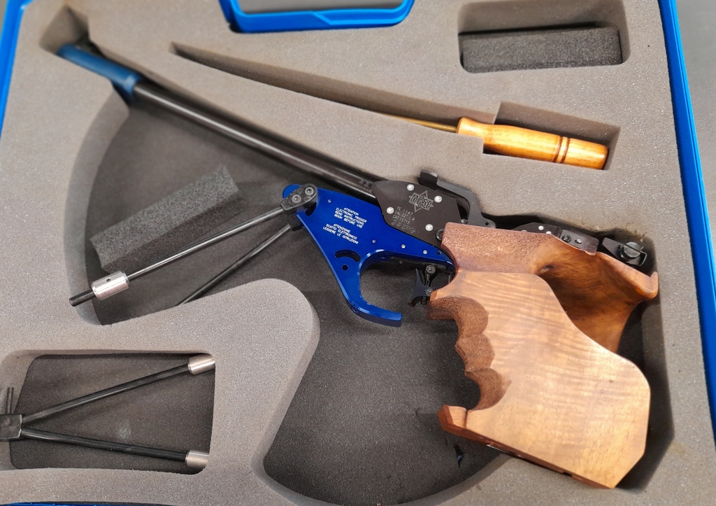 Pistola libera marca Matchguns cal .22 LR completa di baffi di bilanciamento